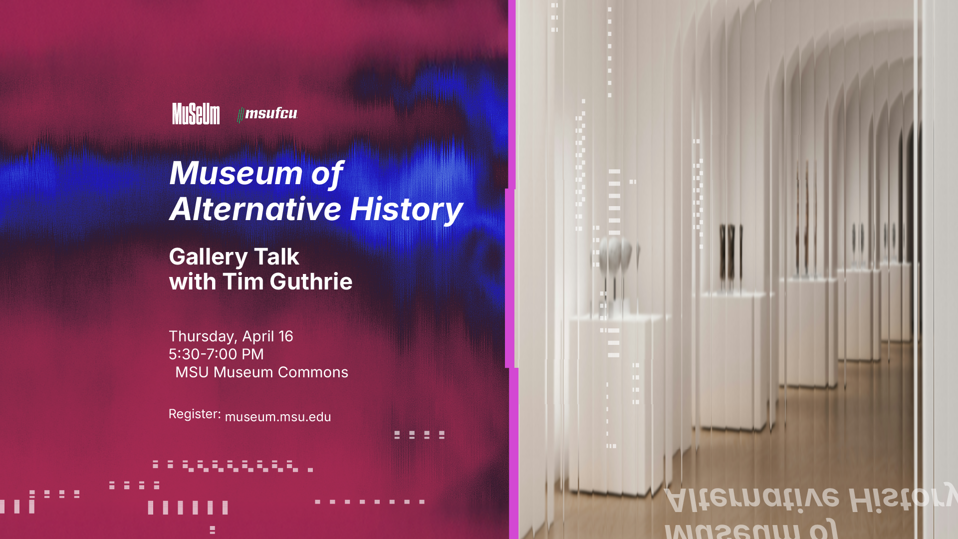 What would an educational institution look like if facts were cherry-picked to fit a particular narrative? Could you recognize that bias if you were literally standing right in front of it? Join us and Professor Tim Guthrie of Creighton University for a guided tour and gallery talk in the Museum of Alternative History. We will learn about the motivations to create this uncanny twilight zone of a natural history exhibit and how to recognize biased information, with an audience Q&A facilitated by Professor Michael Stamm.